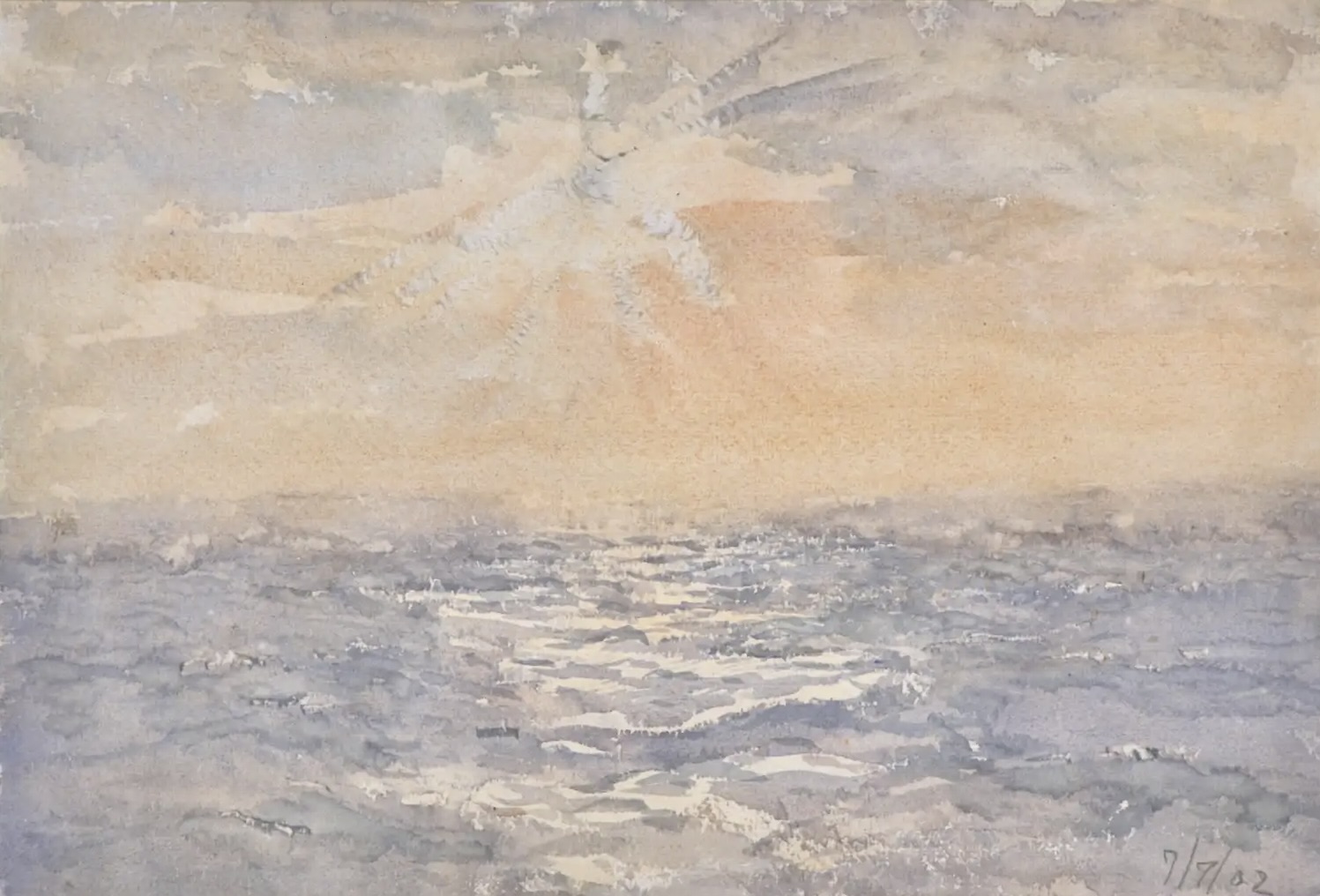 「洋上の夕陽」「京都高等工芸学校の庭」「花」からは、帰国後の活動の一端を垣間見ることができる。