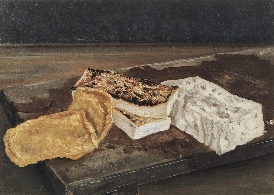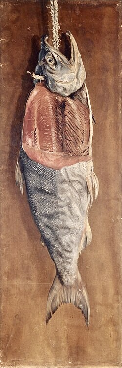 静物画においても、本草学の標本のような客観的かつ即物的なものではなく、独特の迫力が感じられる。1876年の《豆腐》や、1875〜1879年の間に描かれたと考えられる《鮭》を見てみよう。