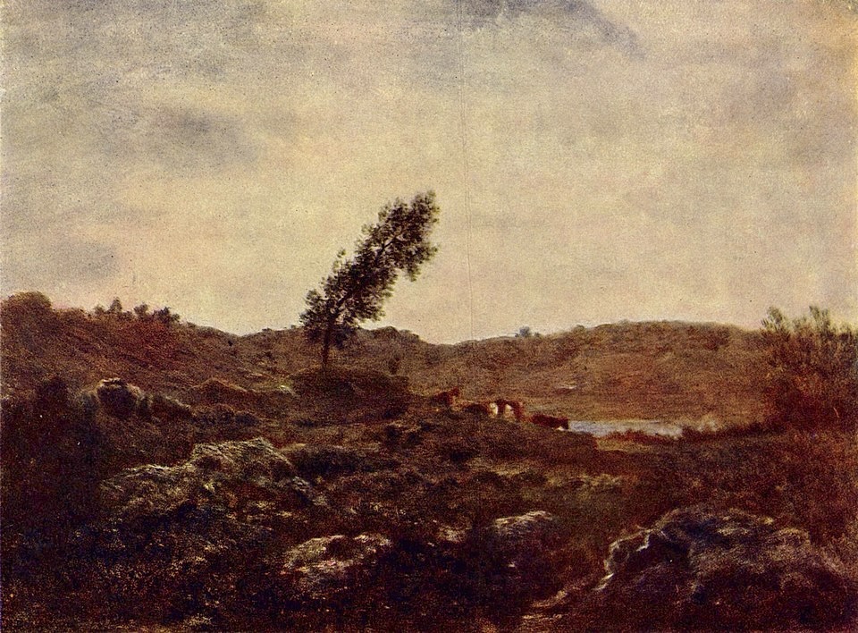バルビゾン派は、それまでのフランスの風景画が理想化された自然を描いていたのに対し、アトリエを出て戸外で実際の風景を直接描くようになった画家たちの集団である。その結果として生み出された絵画は、当然ながら、ありのままの自然を写し取るような写実的な表現を特徴とした。