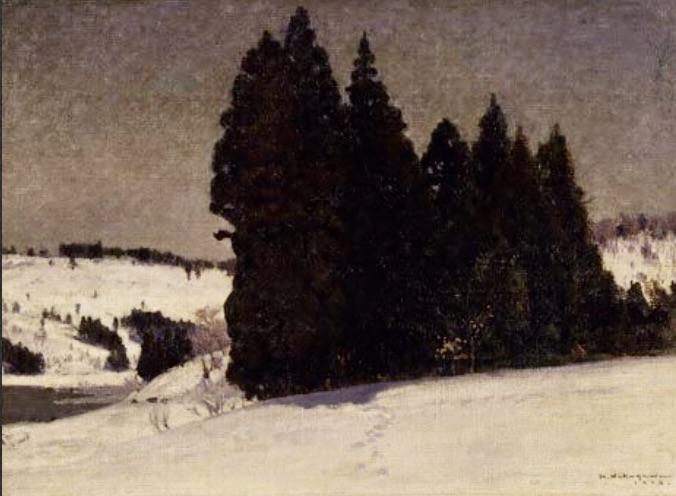 「雪林帰牧」はそうした試みを代表する作品といっていい。アカデミー絵画的な端正な構図は、伝統的な西洋絵画を踏襲している。