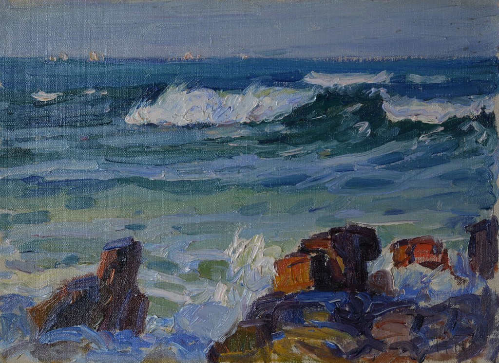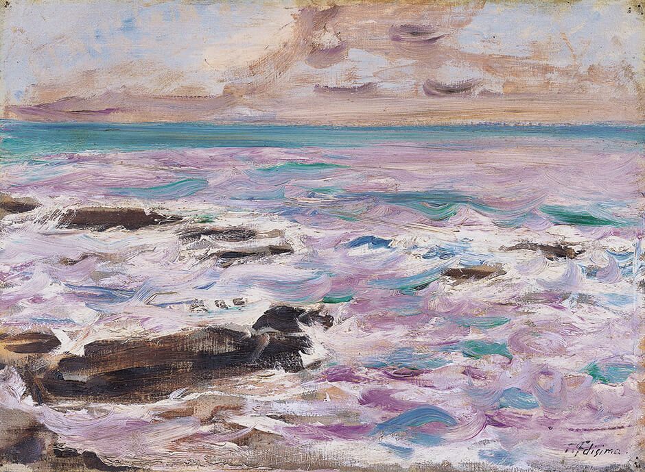 肖像画に見られるフォービスムを思わせる単純化された構図と明確で力強い色彩感覚は、イタリア時代の風景画「ティボリ、ヴィラ・デステの池」でもある程度感じられるが、帰国後に描かれた「波」ではより強いものになっている。