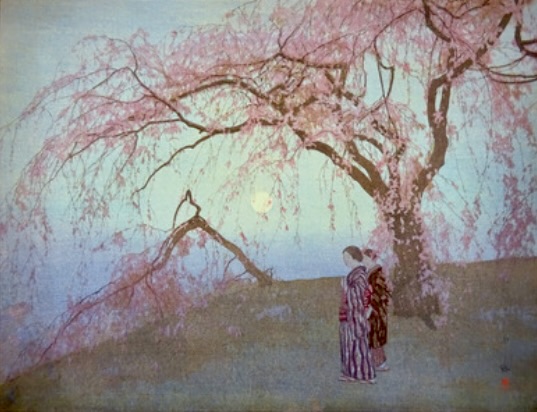 水彩画と木版の「雲井桜」になると、油彩画とは違い、穏やかな雰囲気にあふれ、和のテーストを感じさせる。