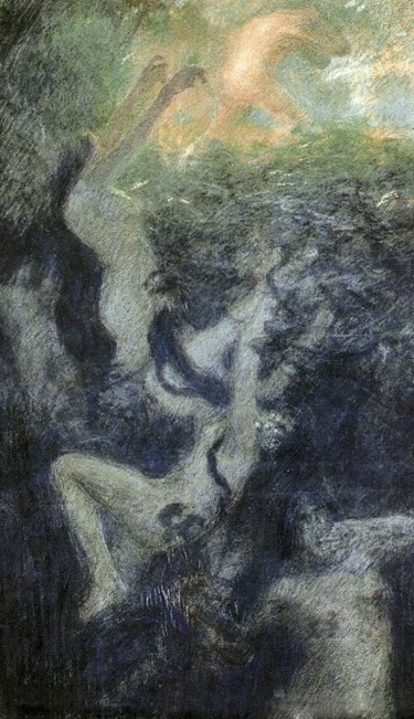 その間、彼は主にアカデミー・ジュリアンで、19世紀後半を代表する歴史画家ジャン・ポール・ロランスの指導を受ける道を選んだ。