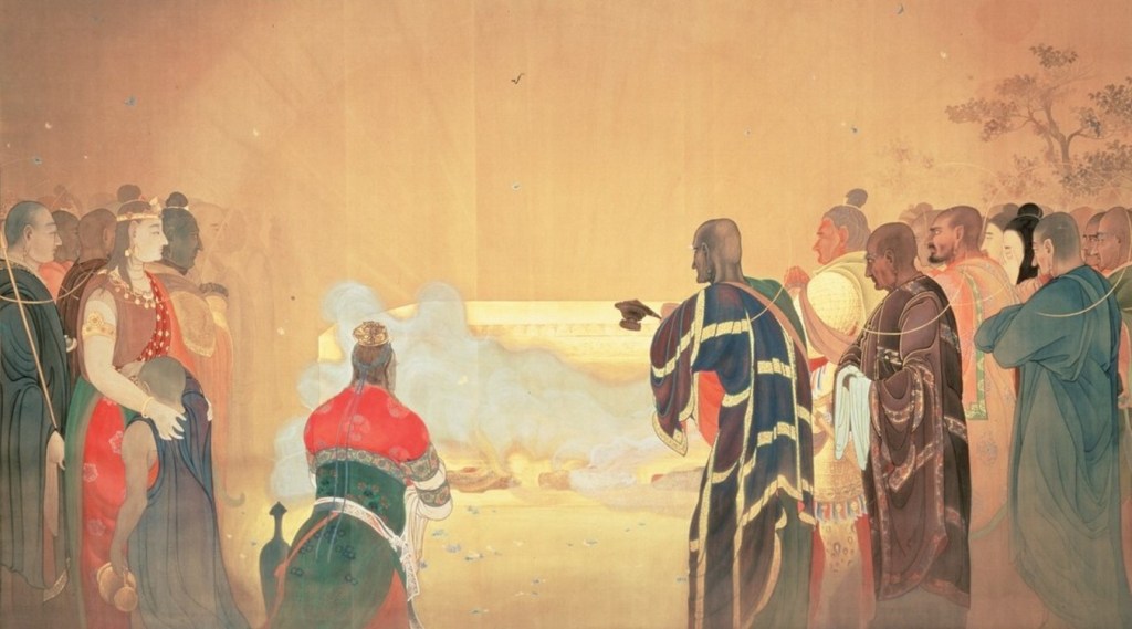 1898年(明治31年)、岡倉天心が東京美術学校を追われた事件の後に開催された第1回日本美術院展には、横山大観の「屈原」とともに、下村観山の「闍維(じゃい)」も出品された。「闍維」は、釈迦が荼毘(だび)に付される場面を描いた作品であり、その主題の選択や色彩表現において、大観の作品とは異なる観山の個性が際立っている点が興味深い。