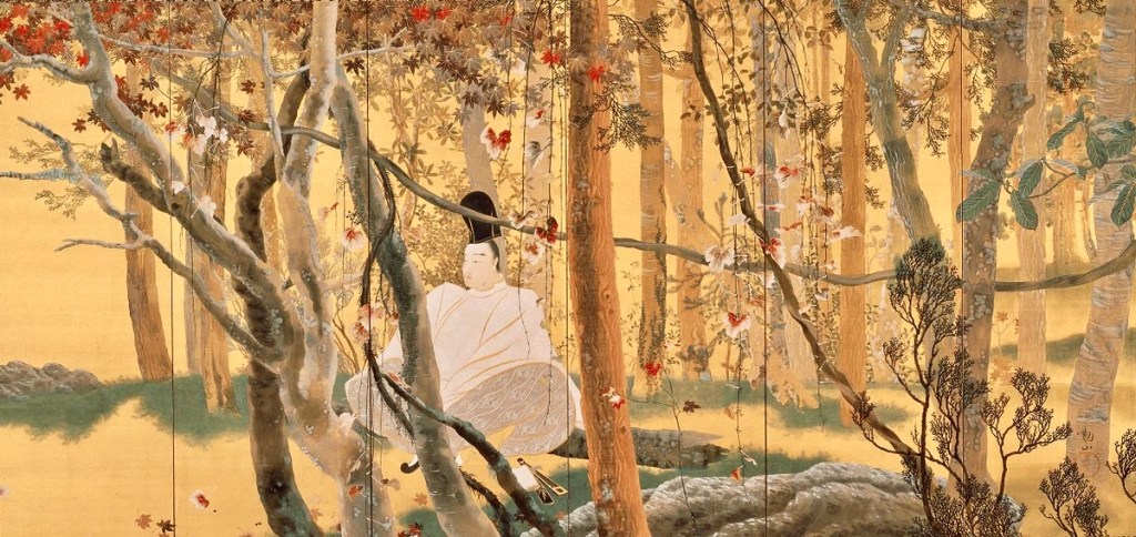 「小倉山」は、京都・小倉山の紅葉に感動した宇多上皇の思いを、藤原忠平が詠んだ和歌、「峰のもみじ葉 心あらば いまひとたびの みゆき待たなむ」、を画題とした作品であると考えられている。