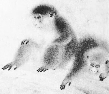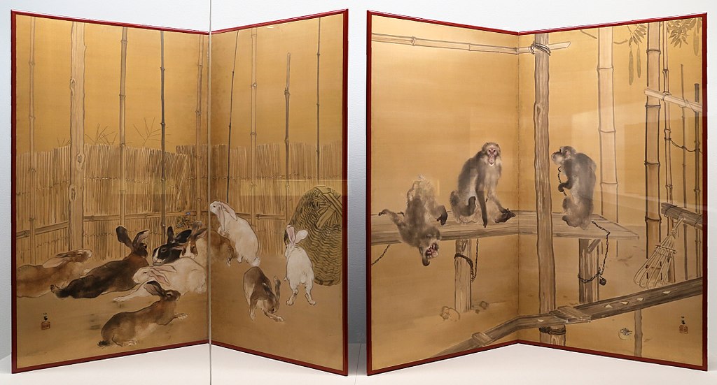 一方で、左右のバランスが取れ、中央にいる猿の奥に視線が導かれる構図には、西洋の遠近法の影響が見て取れる。
