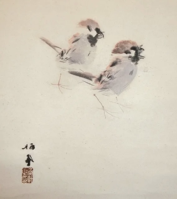 「飼われたる猿と兎」「二雀」や「雪中躁雀図」といった作品にも、写実性を基盤としつつ、伝統的な日本画の形式の中に、まるで生きているかのような小動物や鳥の姿が描き込まれている。