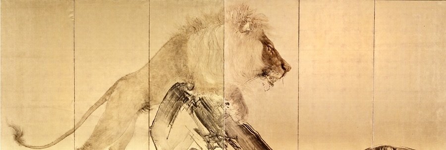 「虎・獅子図屏風」は、それまで日本では実物を見る機会の少なかったライオンや虎を、竹内が実際に目にした後に描かれた作品である。伝統的な日本画に見られる空想的な猛獣に比べ、格段に写実性が高まり、生命感にあふれている。