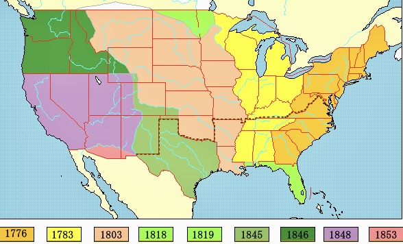東海岸沿いの13植民地は独立宣言後、急速に領土を拡大し、とりわけ西部への進出は著しかった。