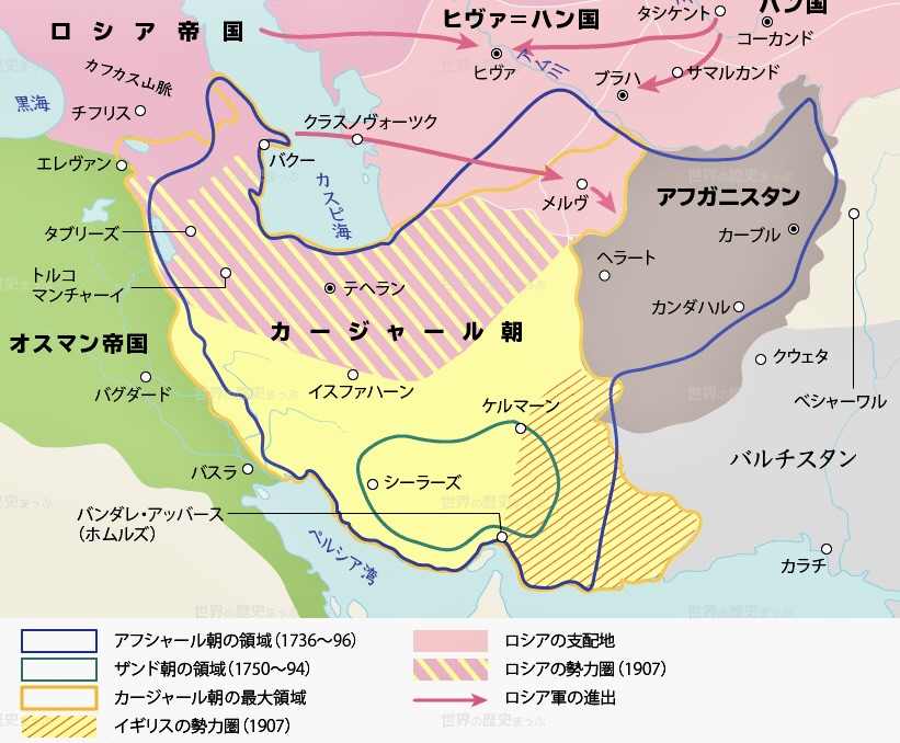 こうした地域とは異なり、イラン(当時のペルシャ)にはロシアも進出していた。