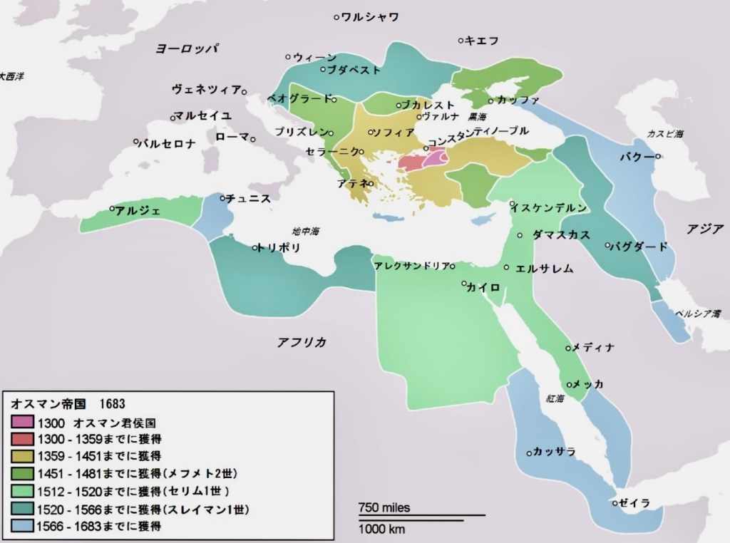 オスマン帝国は、16世紀半ばから17世紀初頭にかけて、ヨーロッパ、アジア、アフリカの三大陸にまたがる広大な領土を支配していた。