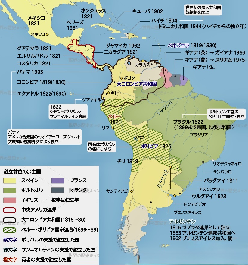 しかし、19世紀前半のナポレオン戦争によるスペイン・ポルトガルの混乱を契機に独立運動が高まり、多くの国が独立を果たした。