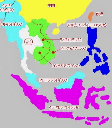 こうして東南アジア全域がほぼ全て植民地化される中で、唯一タイだけが独立を保つことができた。その理由の一つとして、 イギリスとフランスとの間の緩衝材として利用されたことが挙げられている。その意味でタイは、植民地の宗主国の勢力争いの中で、単に争うだけではなく、お互いがぶつからないために妥協することもあることを示す例だといえる。