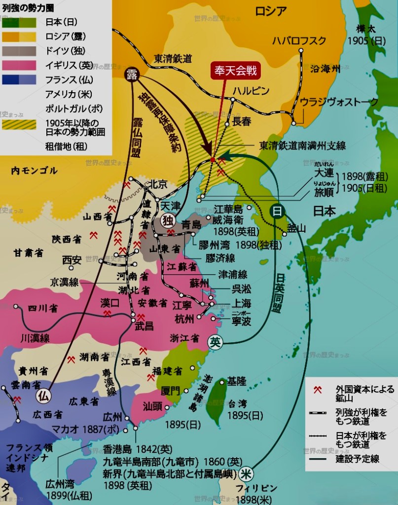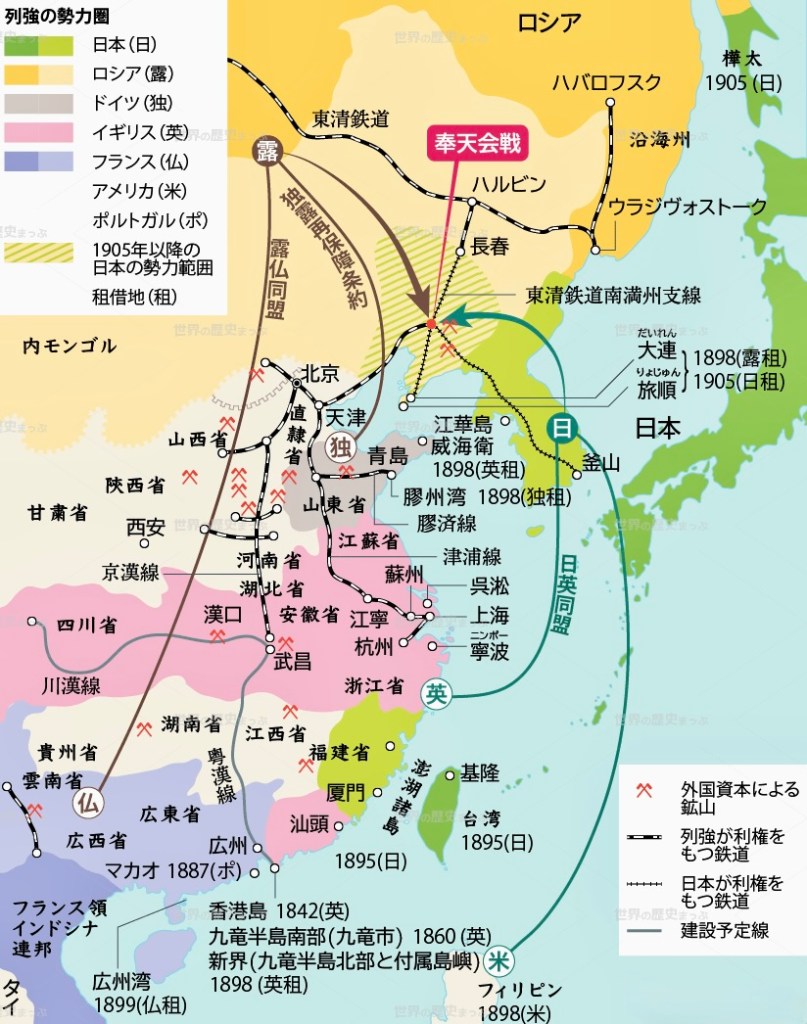 19世紀後半から20世紀前半にかけて、中国大陸もアフリカ大陸と同様に、外国勢力によって分割されたといってもいい状態になってしまう。