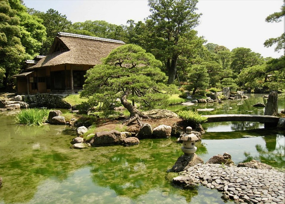 御承知のように、木は、人間的個我の、つまり、整合的、有機的統一体としての人間の自己感覚を表わす主要な象徴形体です。ユングをはじめ、多くの心理学者が、個々の人間的生命に対当するものとして、掛木象徴を使っています。西洋人、中でも特にアメリカ人の”個人”に対する見方としては、背が高くて、真直で、高々とそびえ、ひときわ目立っている、ということです。ところが、ここ京都では、樹々は頂上で刈り込まれ、横に拡がって延びていて、しかも杖で支えられている有様です。それに枯木まで、庭の構成要素に組みこまれている、というぐあいです。樹々はそれぞれお互いに、隣り合った樹々と調和ある均衡を保つようにできています。(同上、p. 261-262)