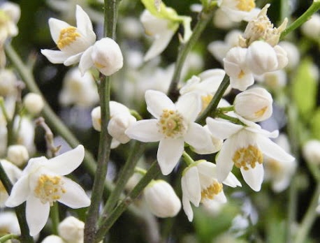 そして、香り高い白い五弁の花を咲かせる橘の枝にとまり、花を散らしながら、一日中さえずり続ける。