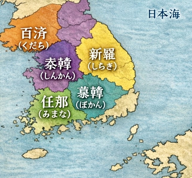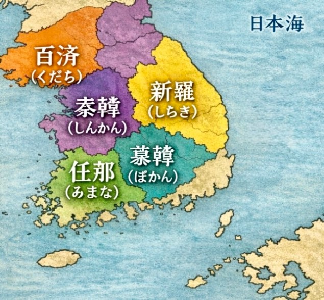 珍(ちん)が宋の文帝に要求した官職には、「百済・新羅・任那・秦韓・慕韓」という、朝鮮半島南部に存在した諸国の名が含まれている点が注目される。