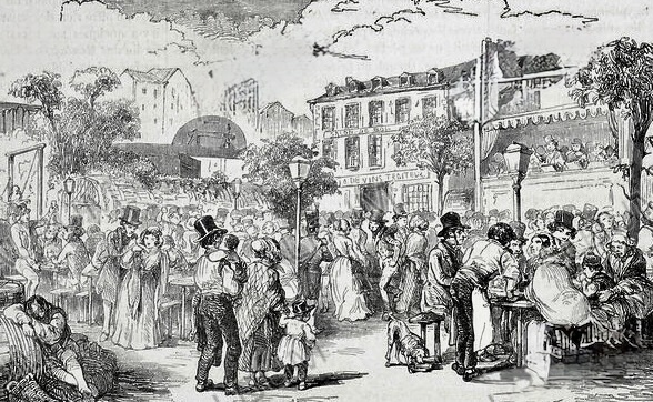 Plus d’un bras me coudoie ; on entre à la guinguette,